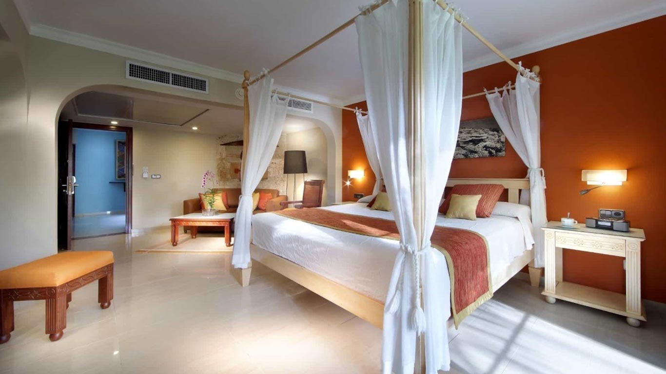 The fabulous Garden View Premium Junior Suite at Grand Palladium Bávaro Suites Resort & Spa measures 45 m2 room with and s is perfect for an idyllic holiday in Punta Cana. Relax in the room’s hydro-massage bath and enjoy the double sofa bed, a choice of a king size bed or two double beds, a mini bar and a flat-screen TV.
