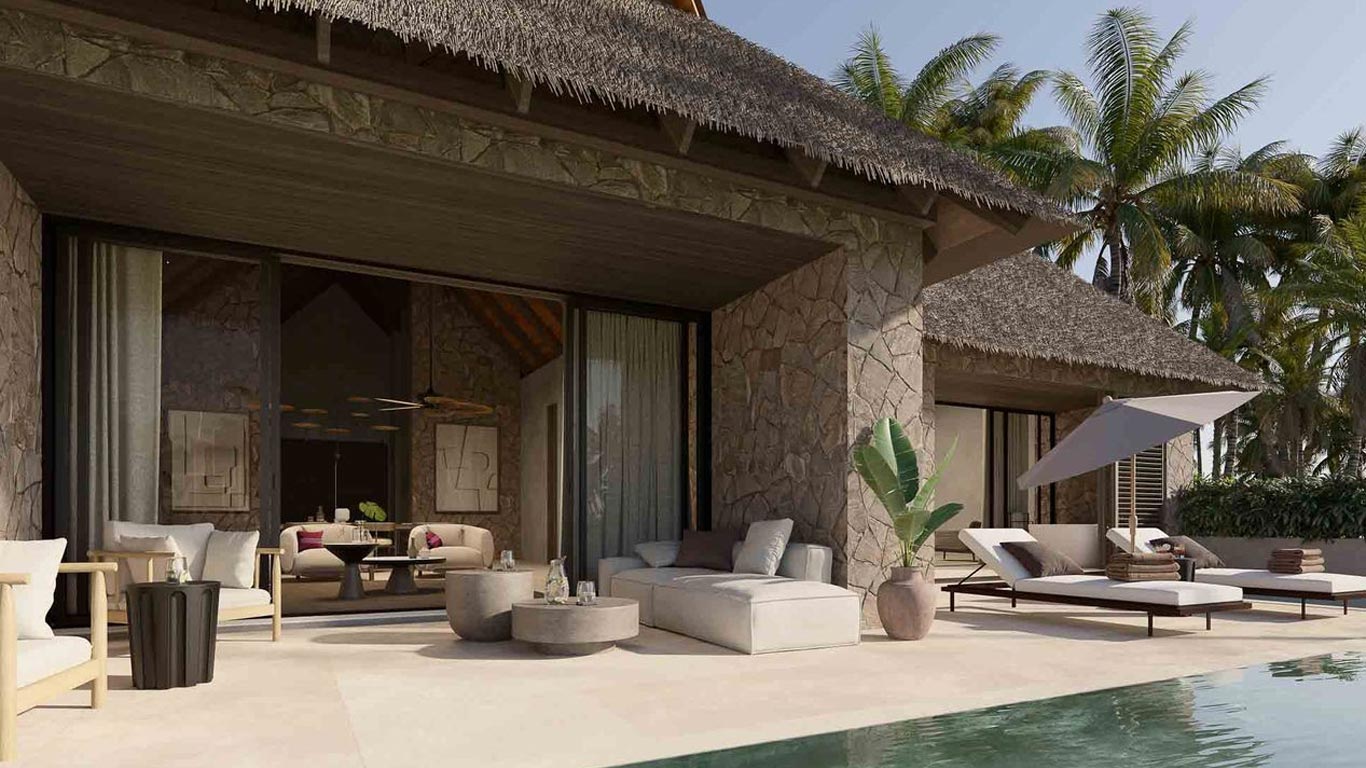 Romance Suite with Private Pool: An intimate escape with direct pool access from your terrace, surrounded by tropical gardens. Blending elegance and privacy, this modern suite offers the perfect setting for relaxation and serenity.